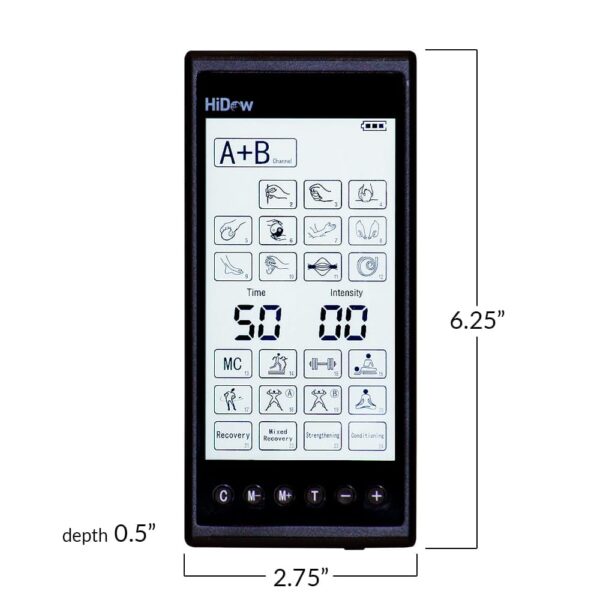 As a modern-day home and on-the-go therapy device, the HiDow XPDS 4|24 uses the latest bio-electrical technology for instant pain relief. Designed with various functions for deep relaxing and soothing sensations, target any specific area of your body that needs attention, including tense muscles. Featuring the largest LCD of all HiDow models, this FDA-approved, Class II Medical device is designed with 24 modes of TENS (pain relief/relaxation) and EMS (muscle/fitness performance) functions and 20 intensity level settings per channel. The XPDS 4/24 is also equipped with an adjustable timer, 4 output channels, and a rechargeable lithium battery. Relax and rejuvenate your mind and body with HiDow’s new XPDS 4|24 device.